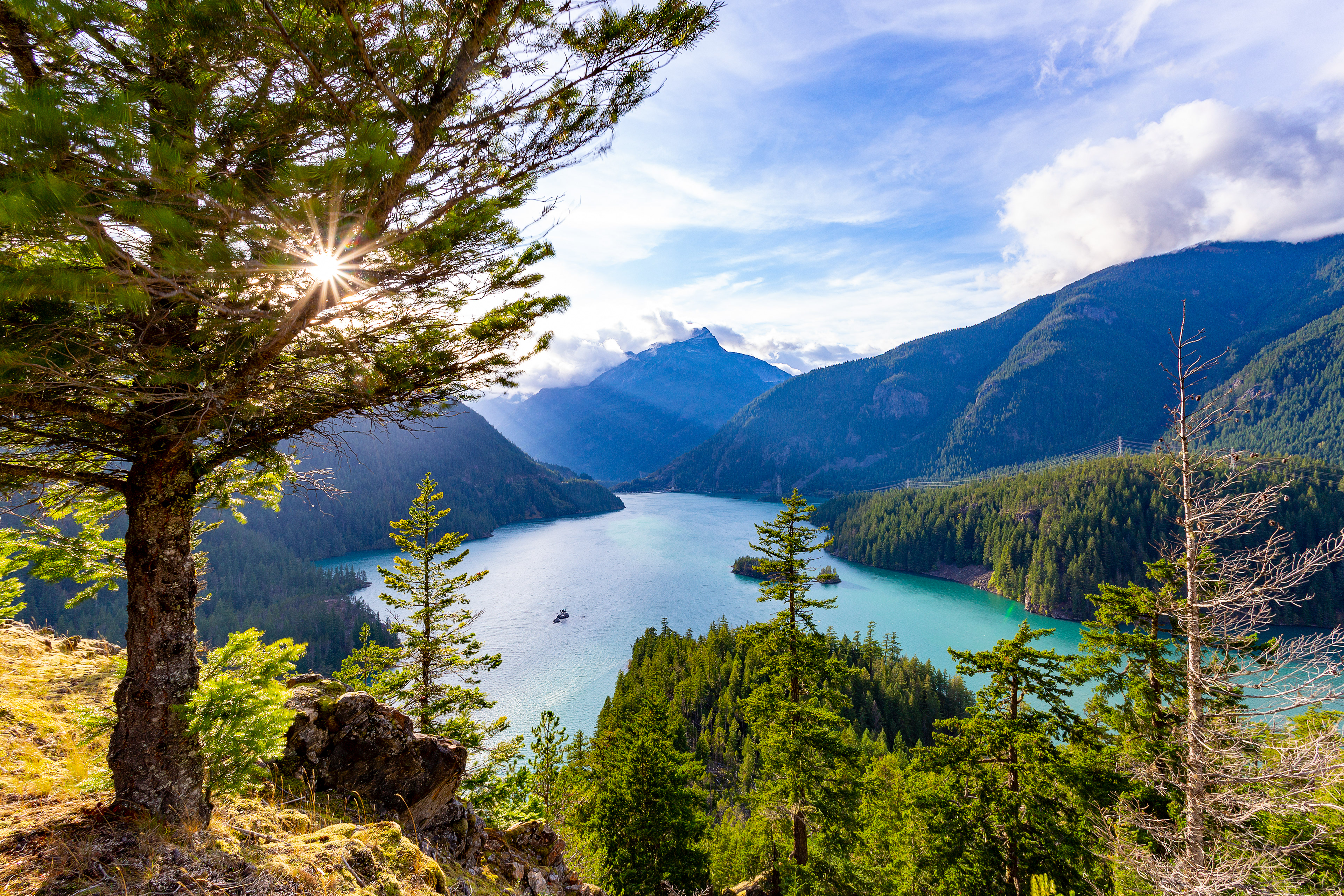 The sun sets over Lake Diablo in North Cascades National Park in Washington
