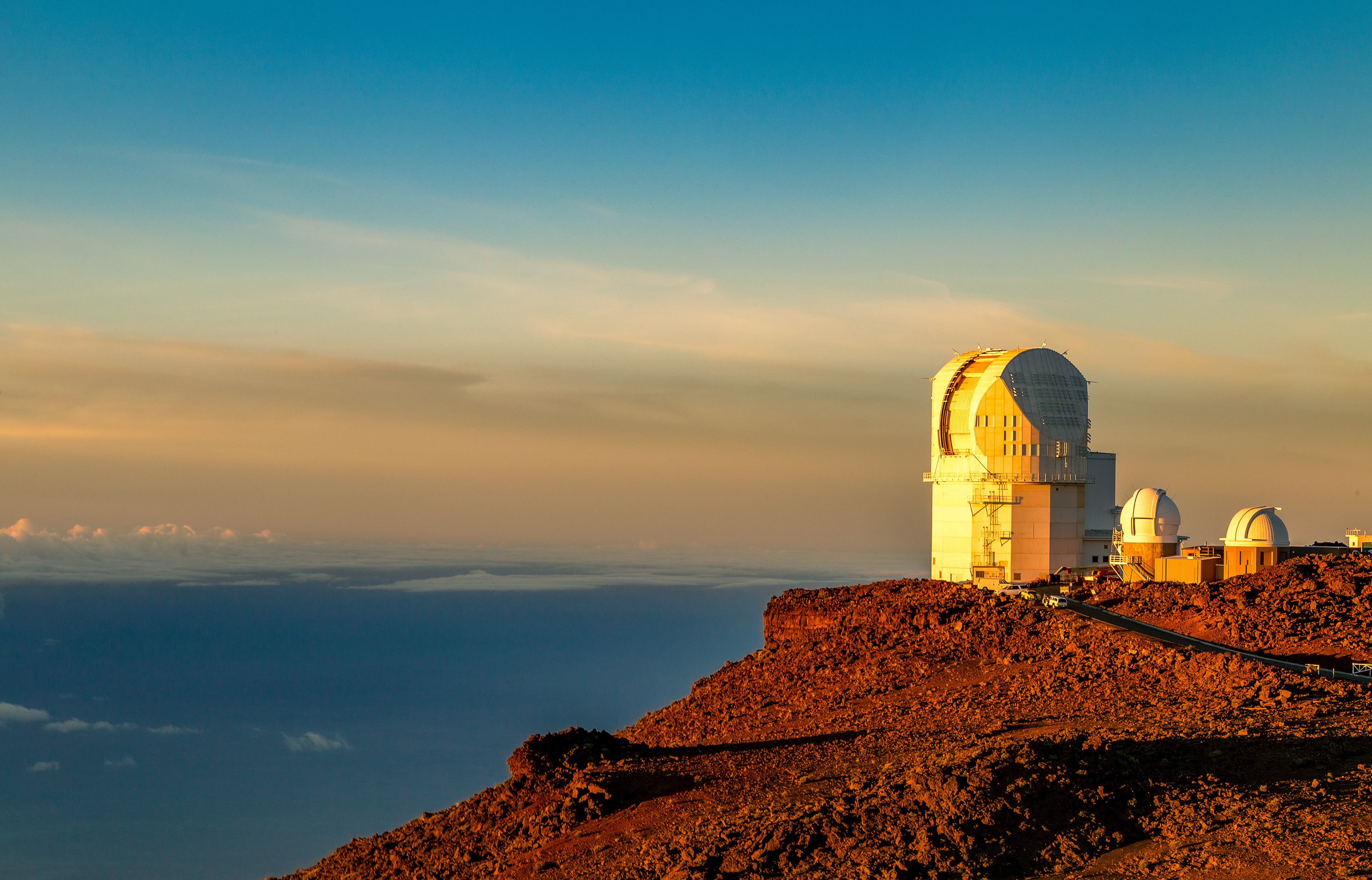 The morning sun illuminates the Daniel K. Inouye Solar Telescope at the Haleakala Observatory in Maui