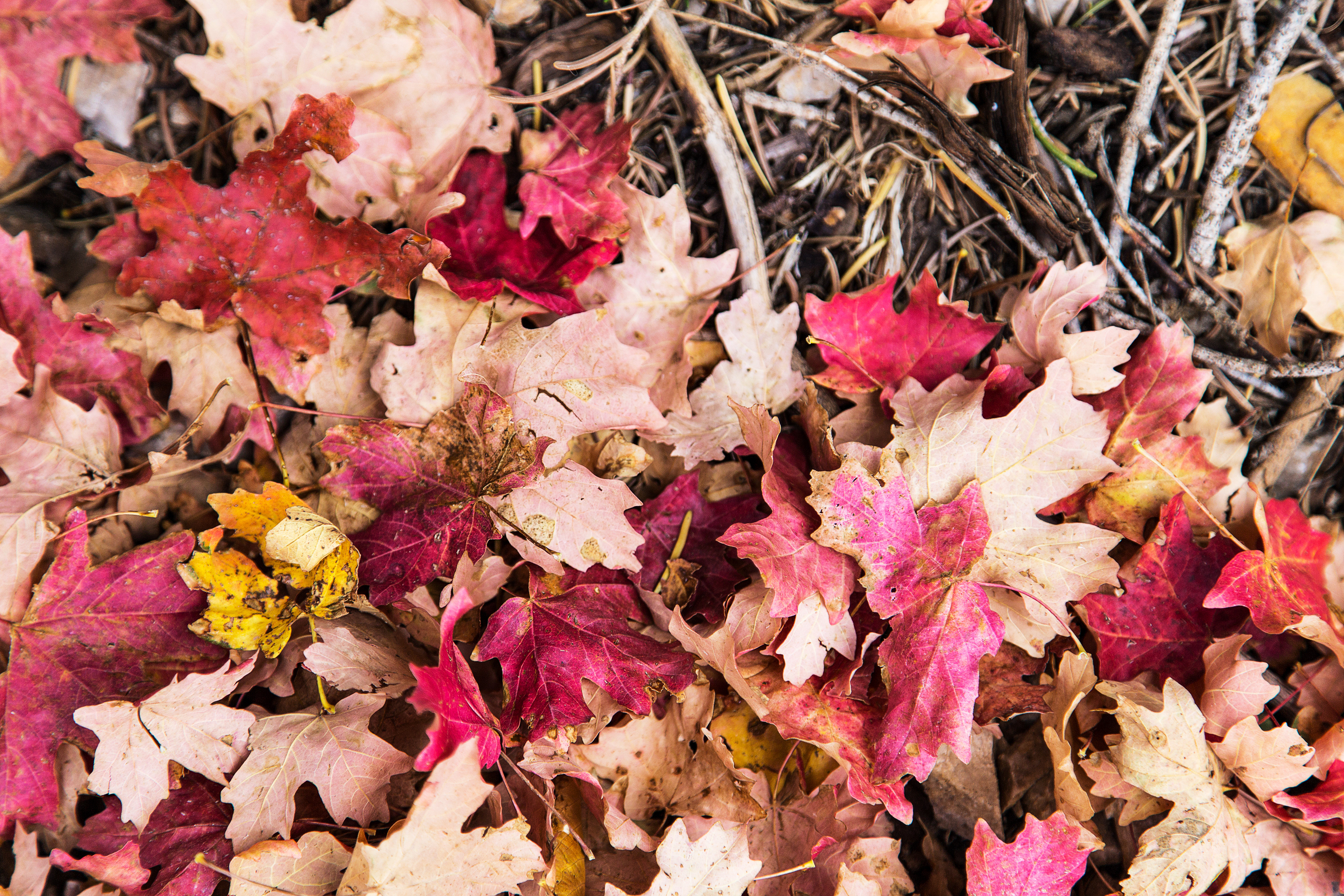 Autumnal leaves accumulate on the floor of Uinta National Forest