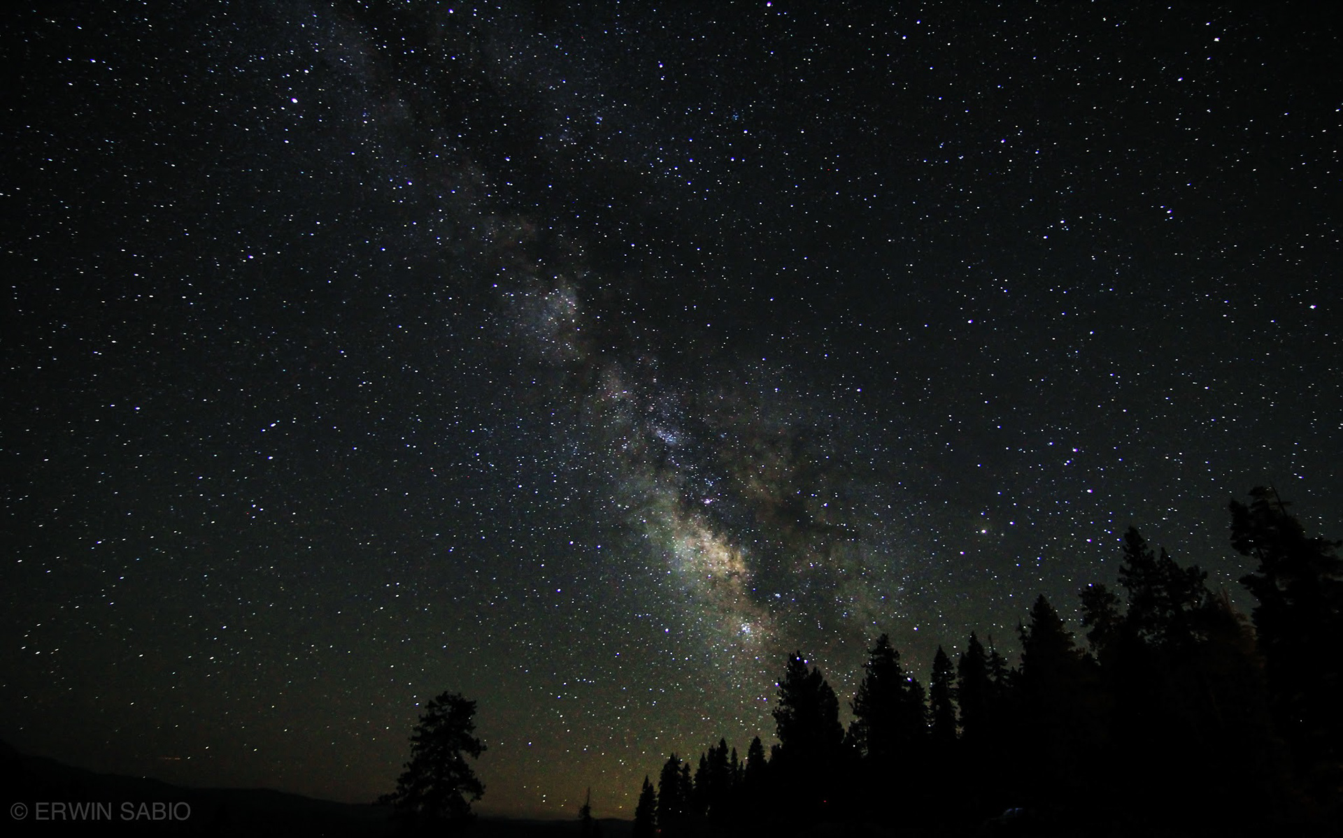 The galactic core of the Milky Way shines high over the darkness of Glacier Point in Yosemite National Park.