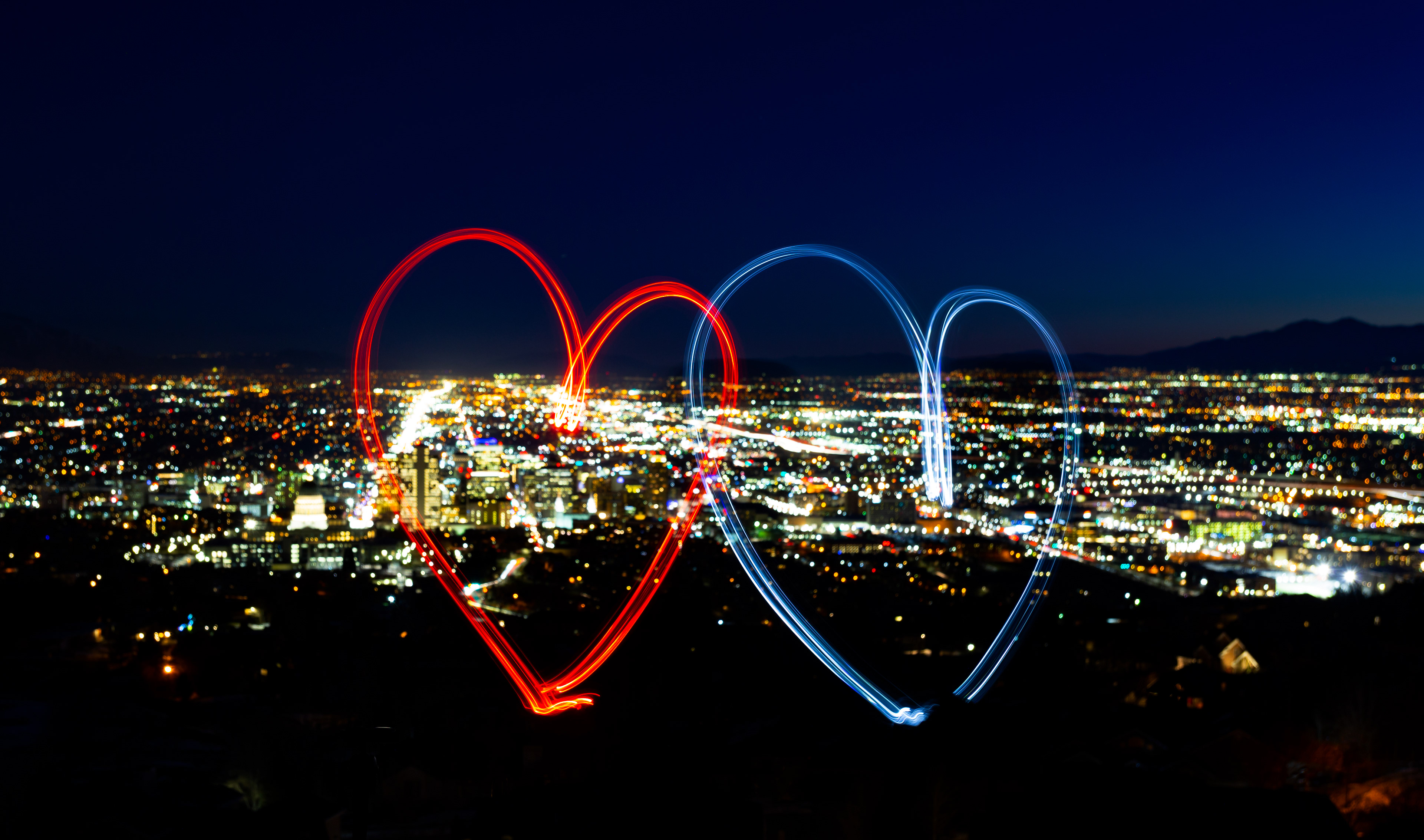 Lightpainting on Valentines evening on the slopes of Ensign Peak overlooking Salt Lake City
