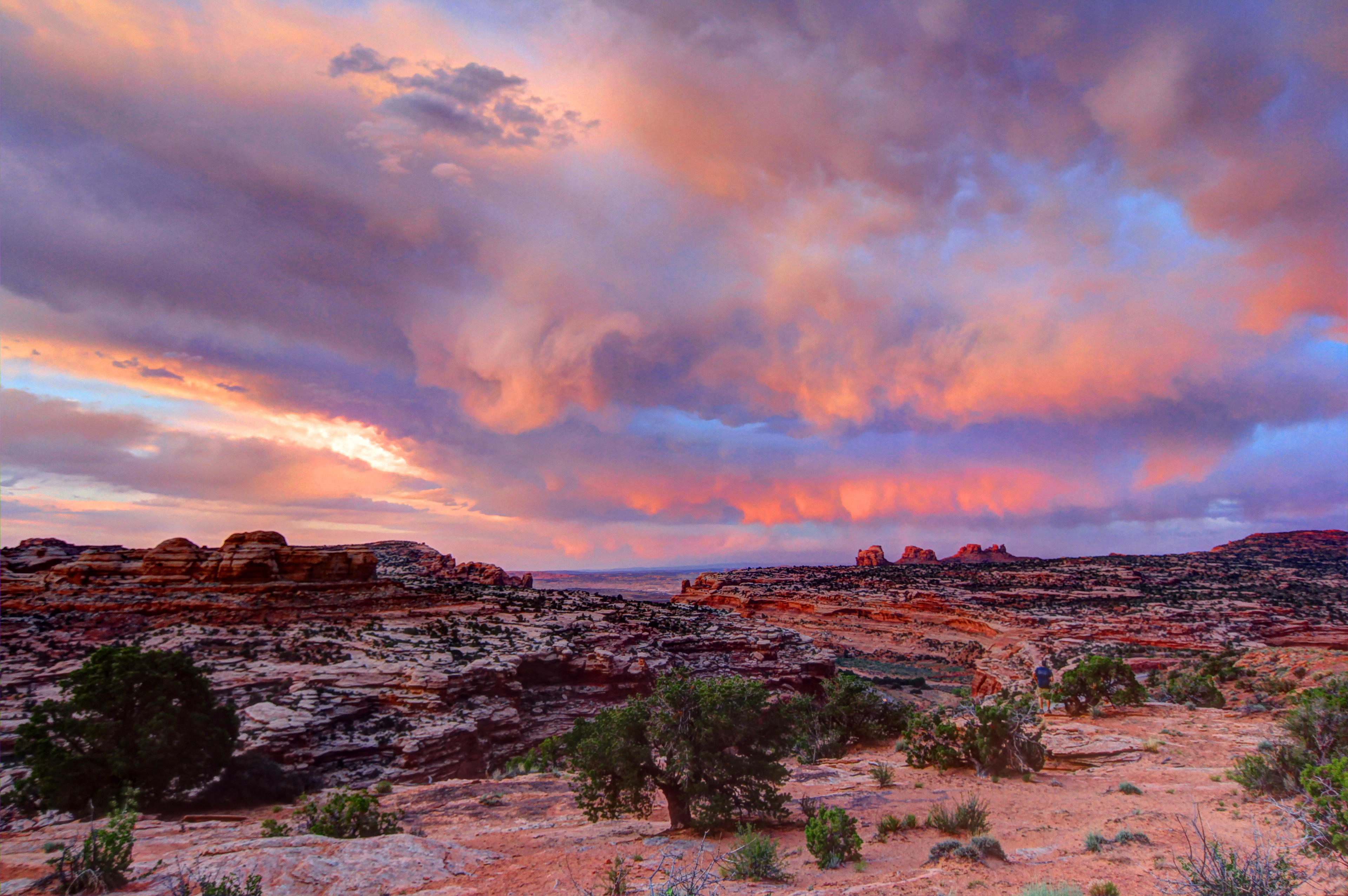 Thunderclouds illuminated by the setting sun appear more menacing as they approach Canyonlands National Park